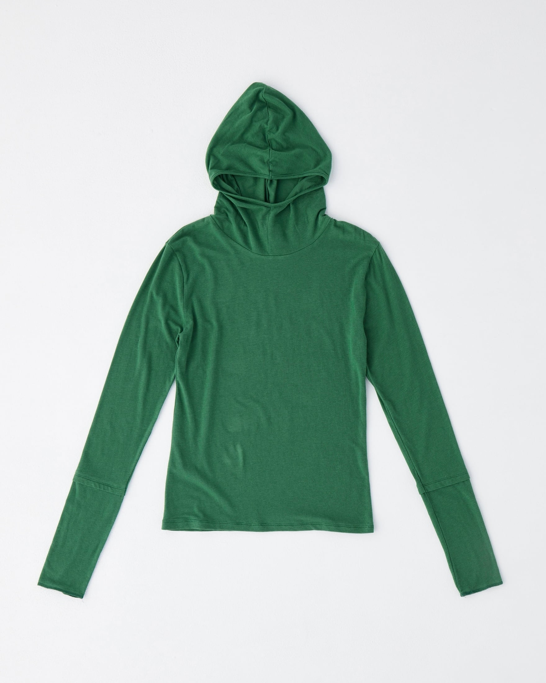 ふんわりと肌触り柔らかなベア天素材を使用した、一枚着にもインナーにも大活躍なフードカットソーです。