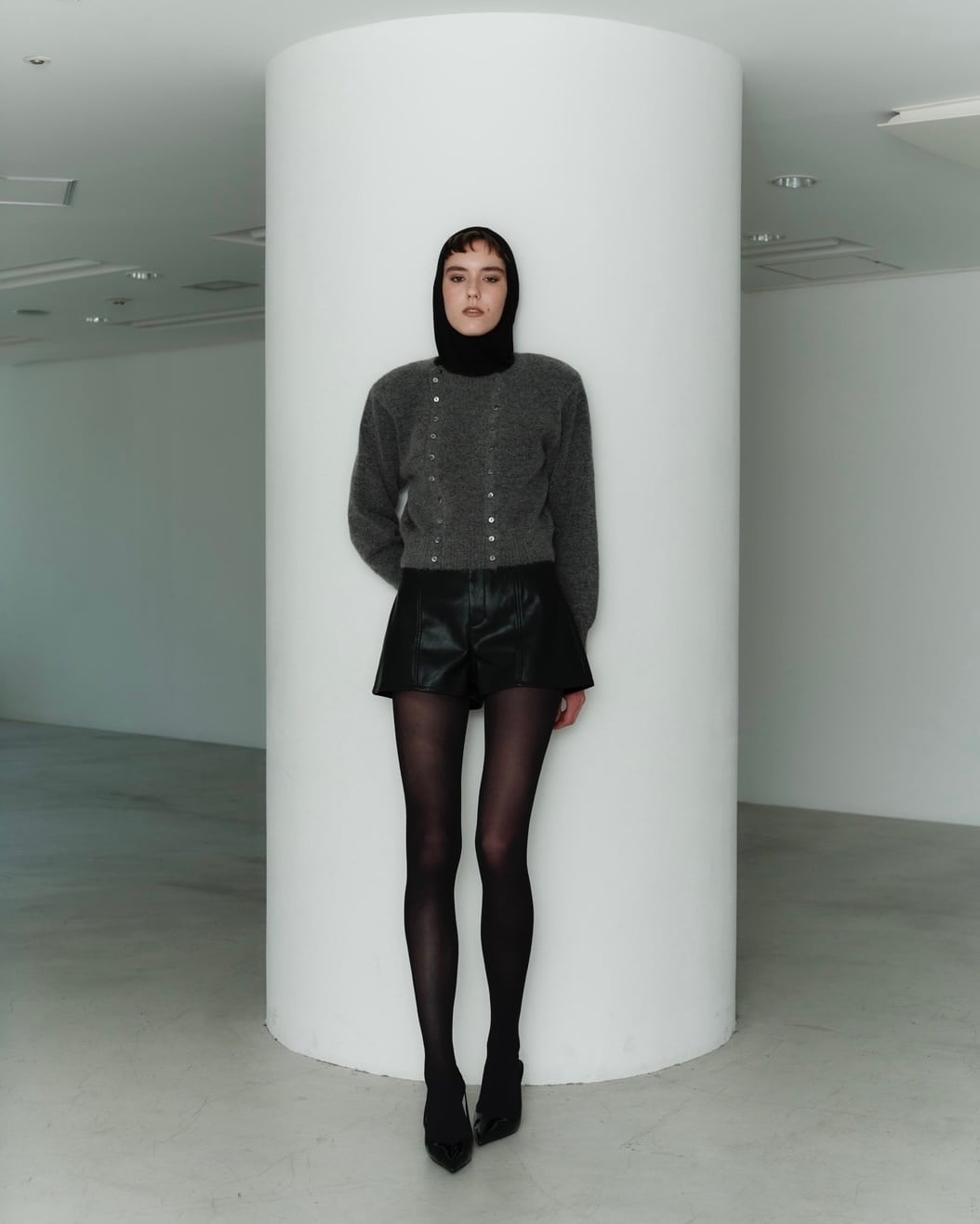 取り外し可能な肩パットとクロップドの丈のバランスが、少しレトロで上品な印象に。