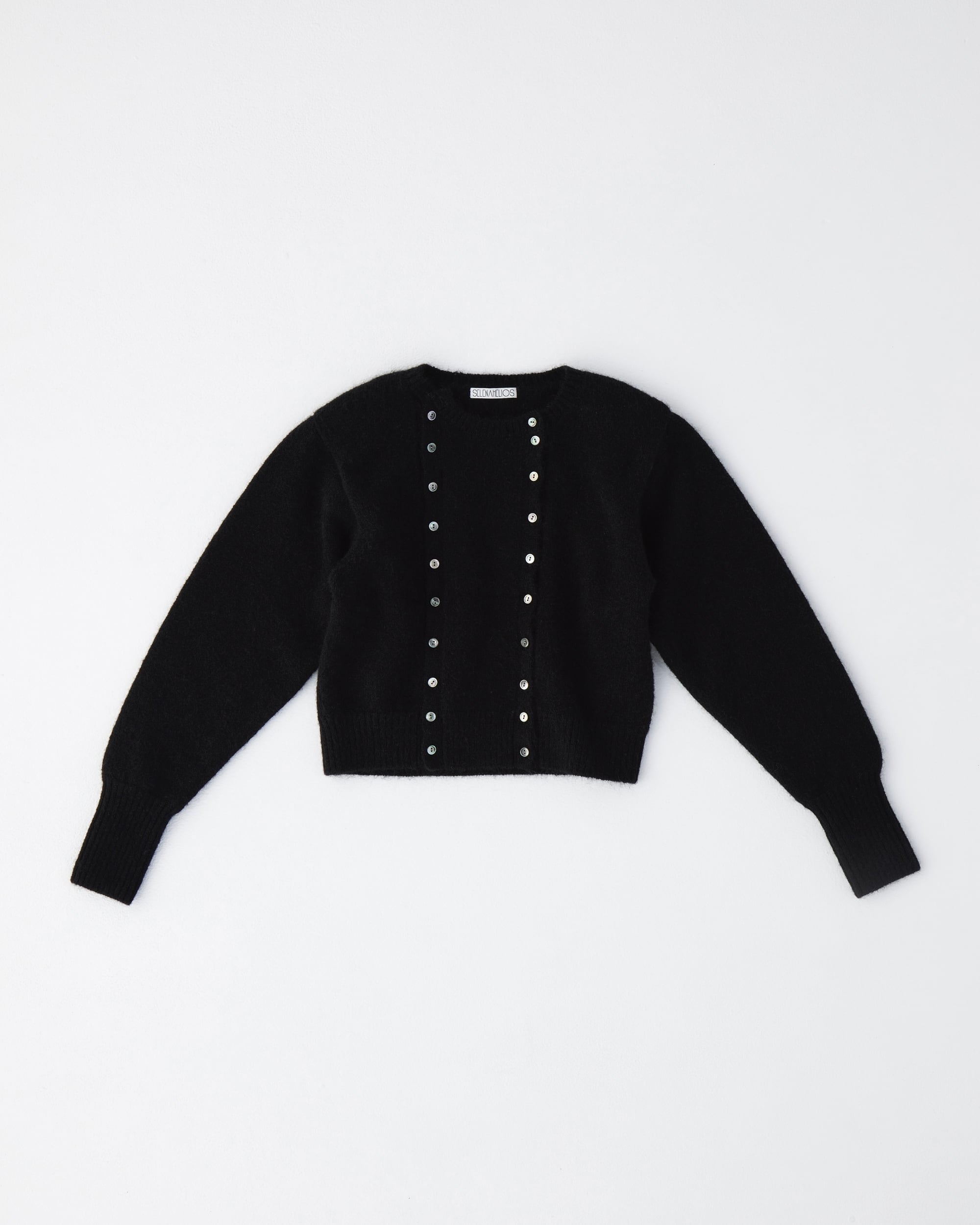 フロントのボタンが目を惹く、コンパクトなモヘア混のニットカーディガン。