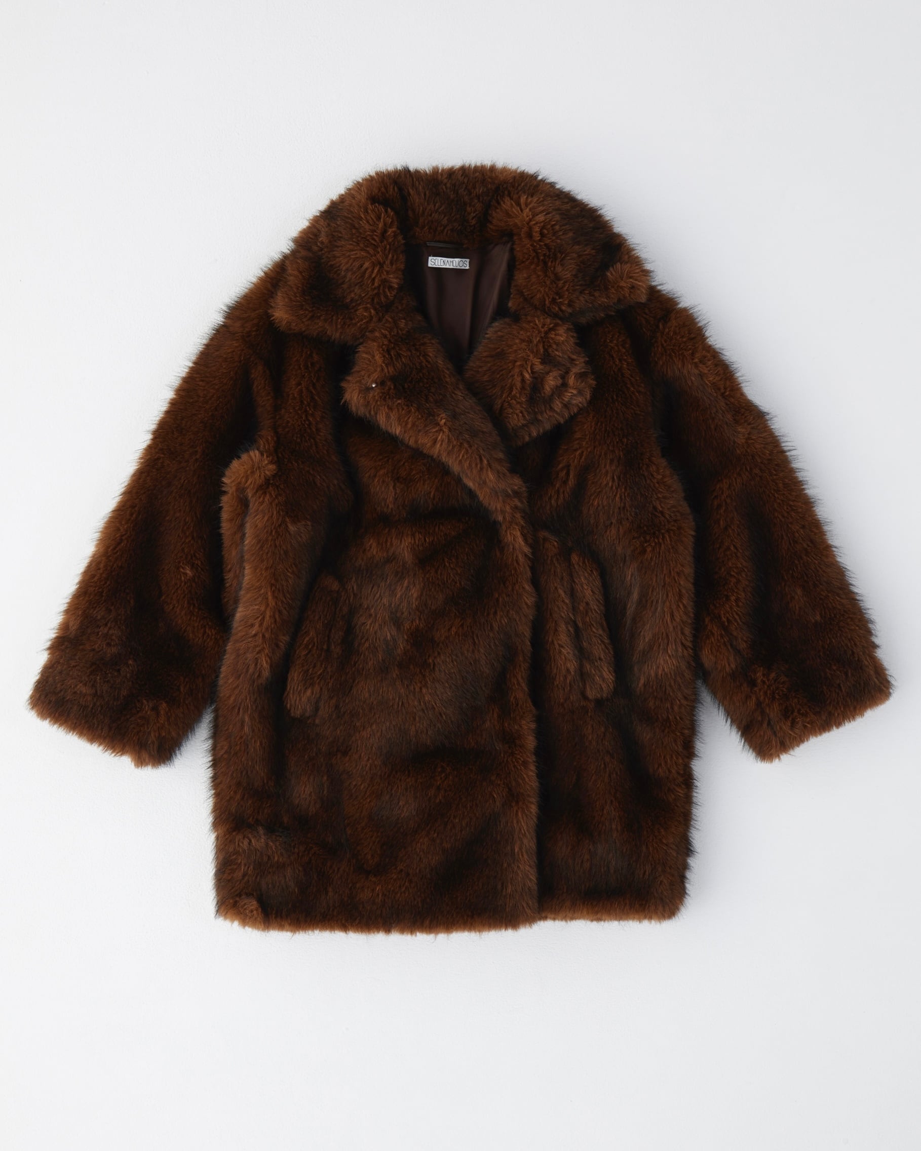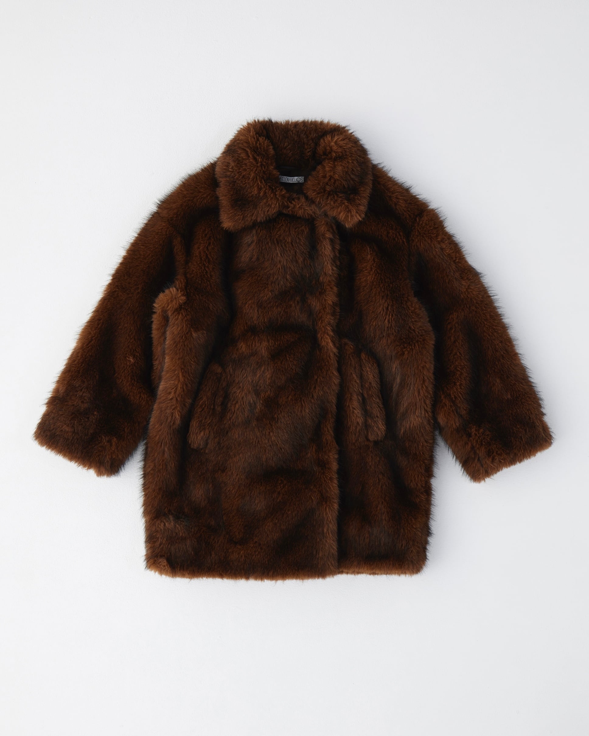 毛足が短く程よい光沢感と、肌触りの良い上品なフェイクファーコート。