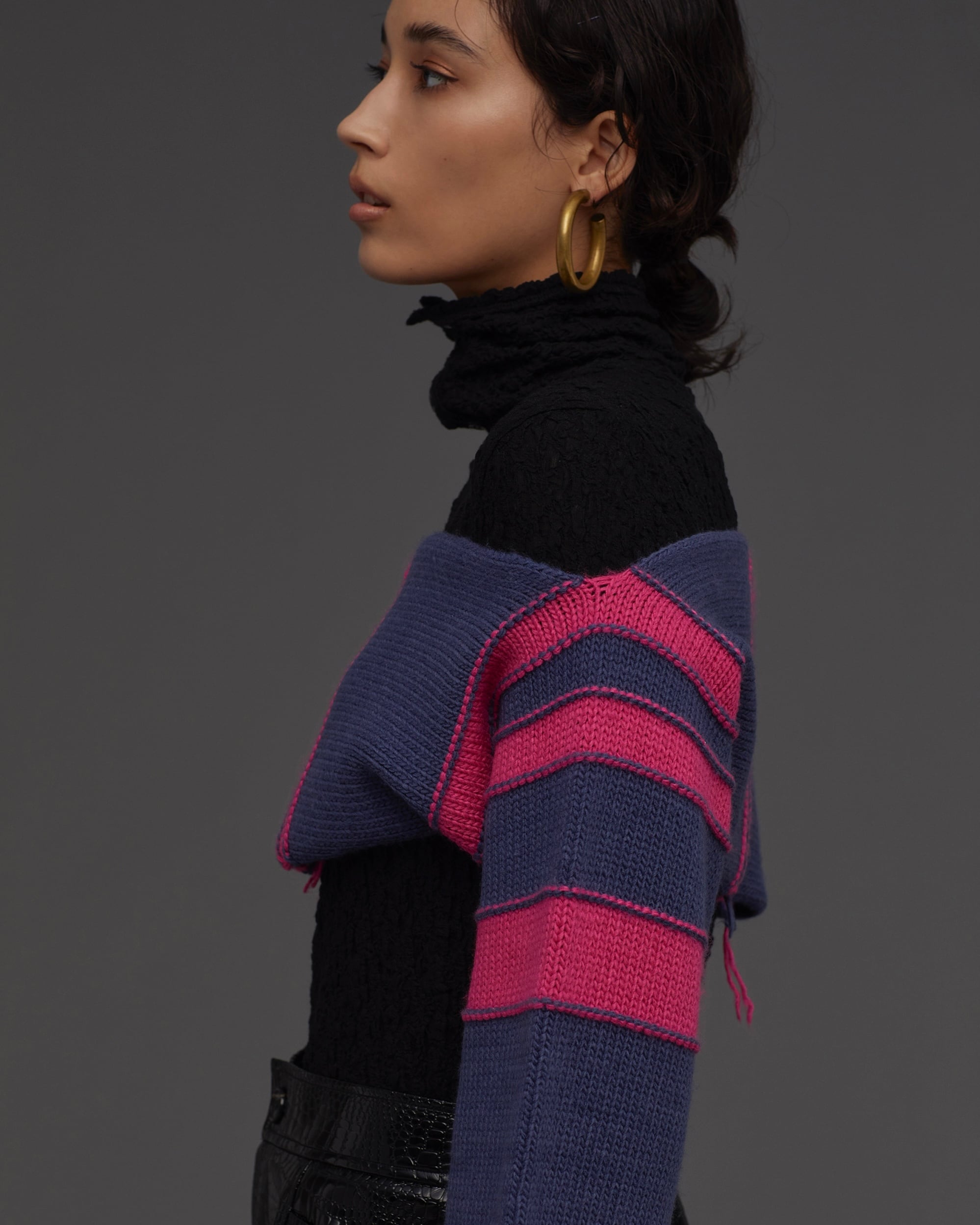 袖にも、ボレロにも、ストールにもなる万能アイテム。 POPなカラーリングと、フリンジの仕様でより個性的に仕上げました。 ドライクリーニング。 Acrylic 100% size F : 天幅37cm 裾幅41cm 袖丈61cm 67cm(モデル身長167cm) こちらの商品は予約商品です。発送予定日が前後する場合もございます。 予約後のキャンセルは承れませんので、予めご了承ください。