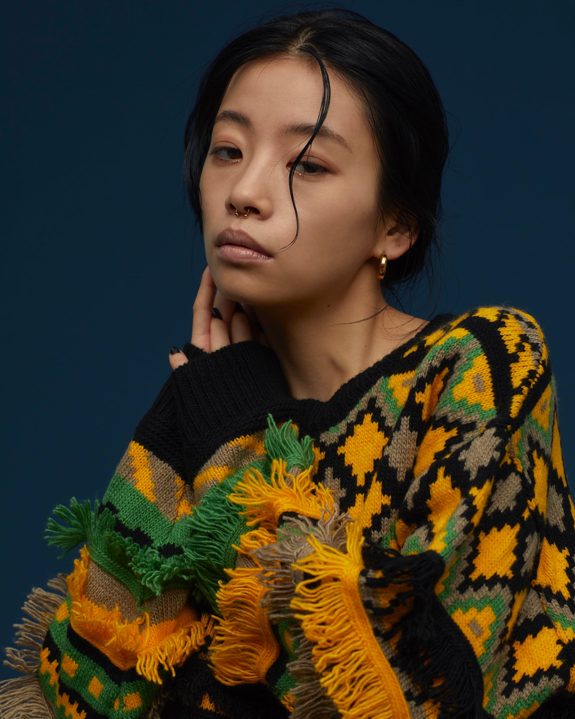 部分部分にフリンジが施されており、一枚で存在感が出ます。
