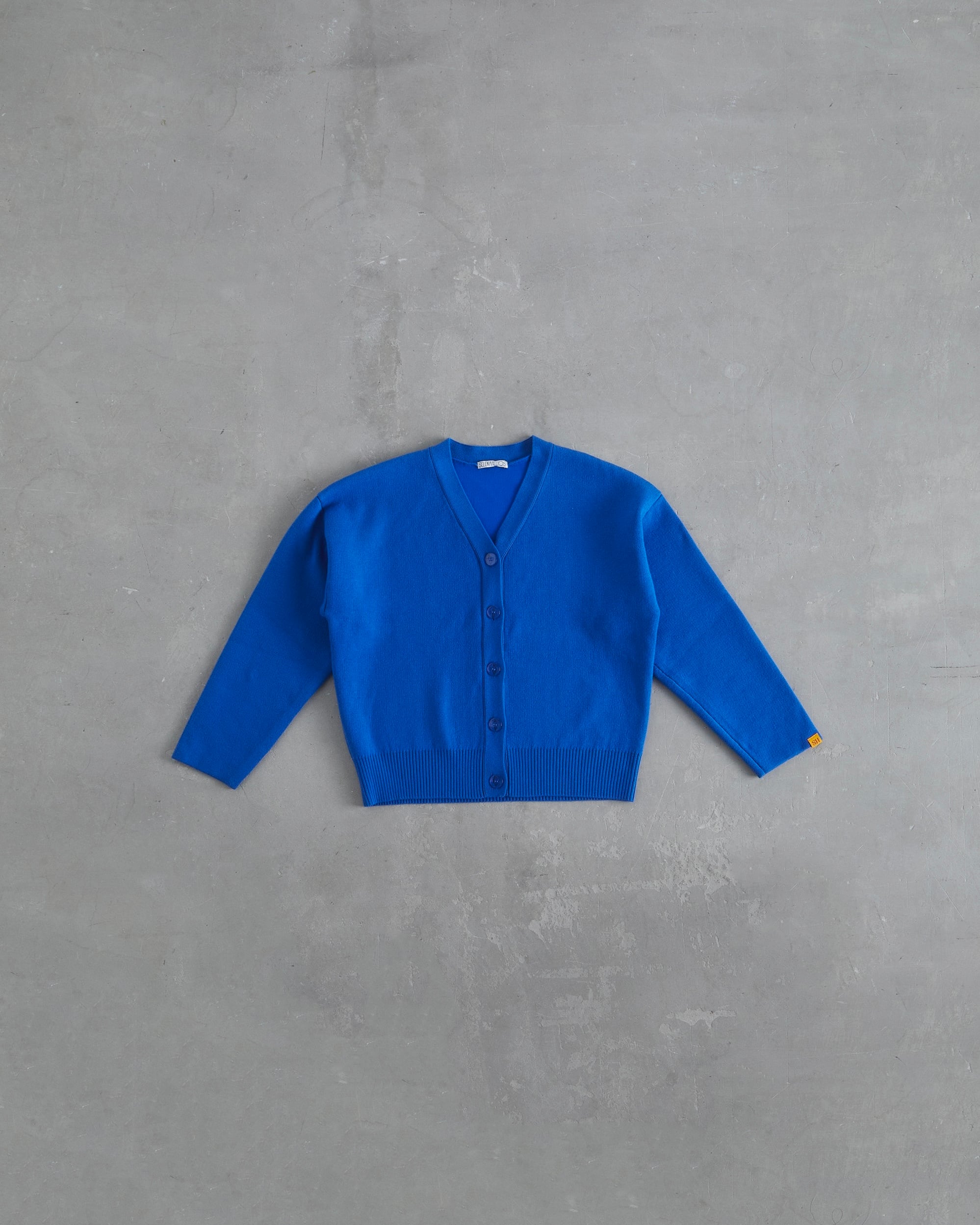 ばほっとしたシルエットが特徴のプレーティングのニットカーディガン。