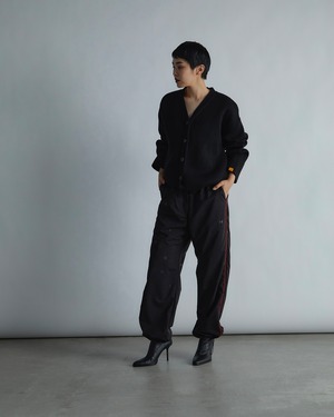 表と裏で違う糸で編んでいるので立体的な厚みがあり、アウターに近い感覚でご着用いただけます。