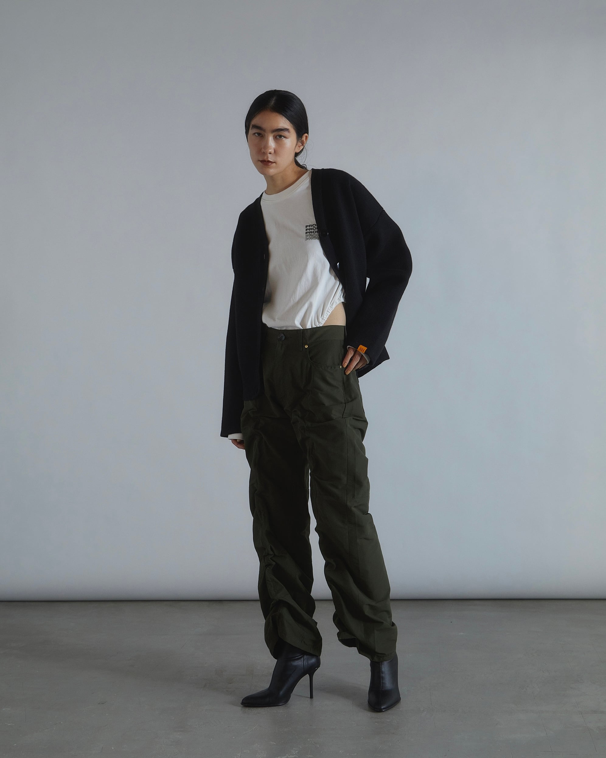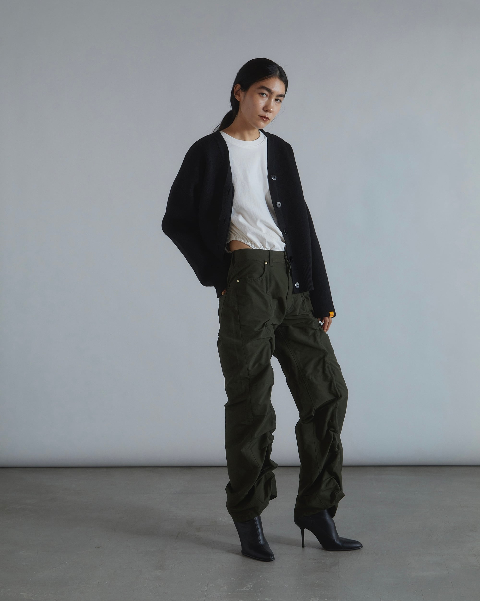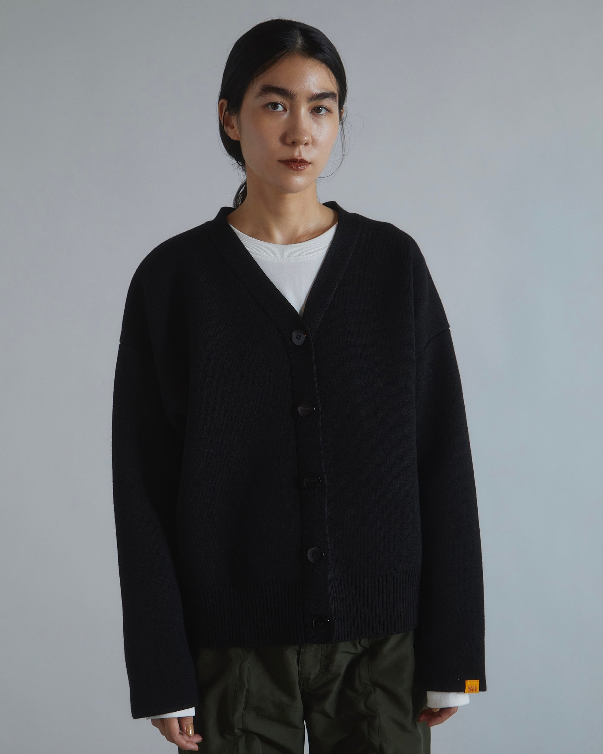 ボタンは身頃と同色のクリアなボタンを使用し抜け感を出しています。