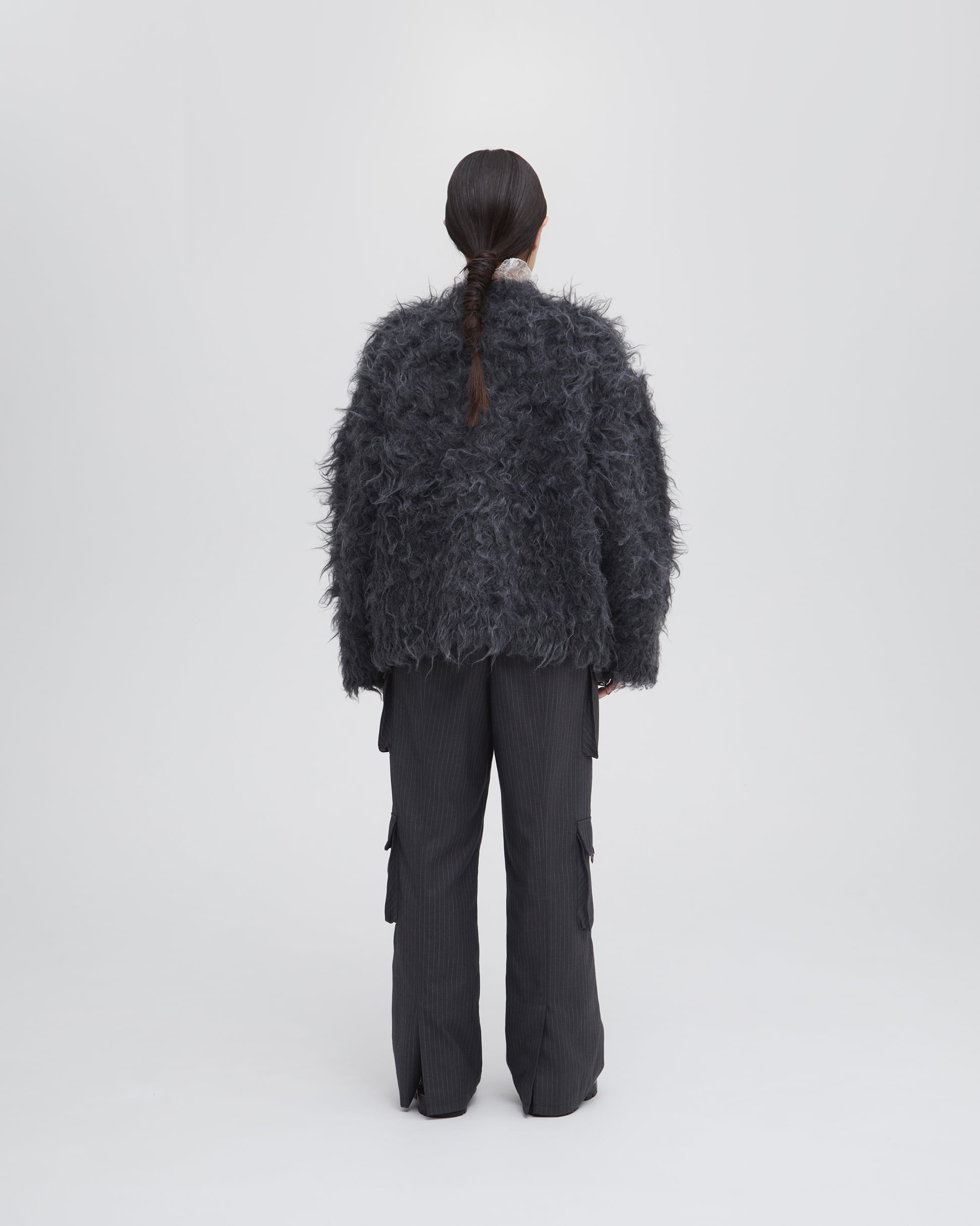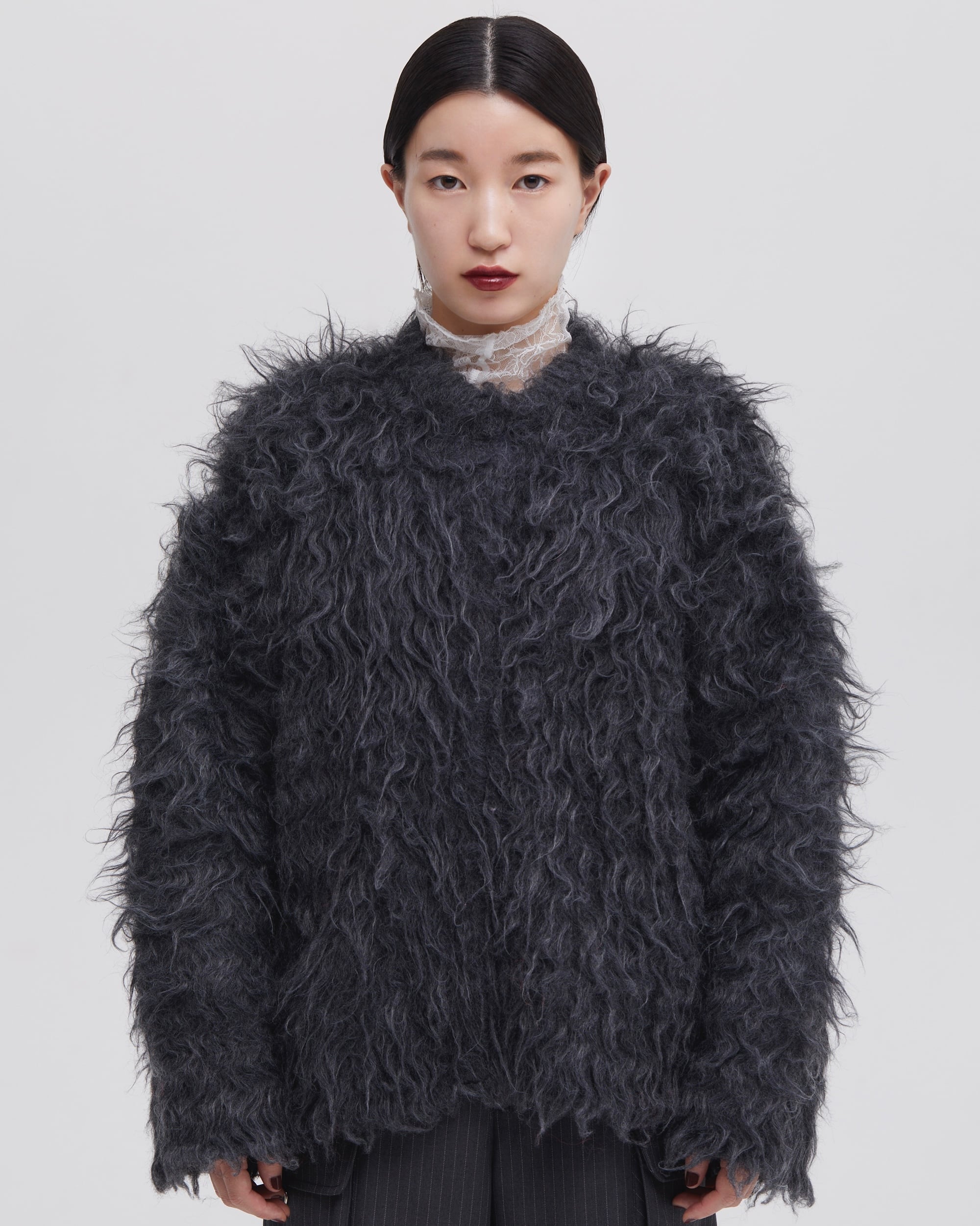贅沢なボリューム感のシャギーニットのカーディガン。